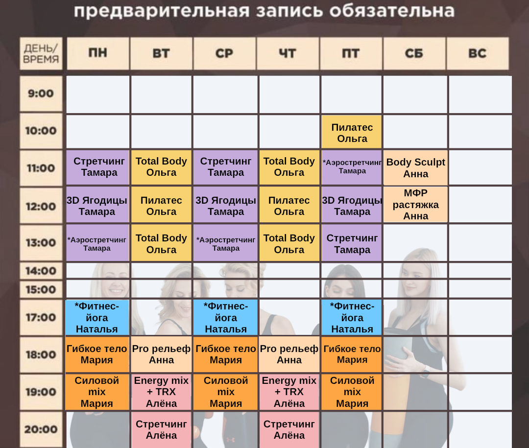*На все тренировки необходима предварительная запись https://n1084011.yclients.com